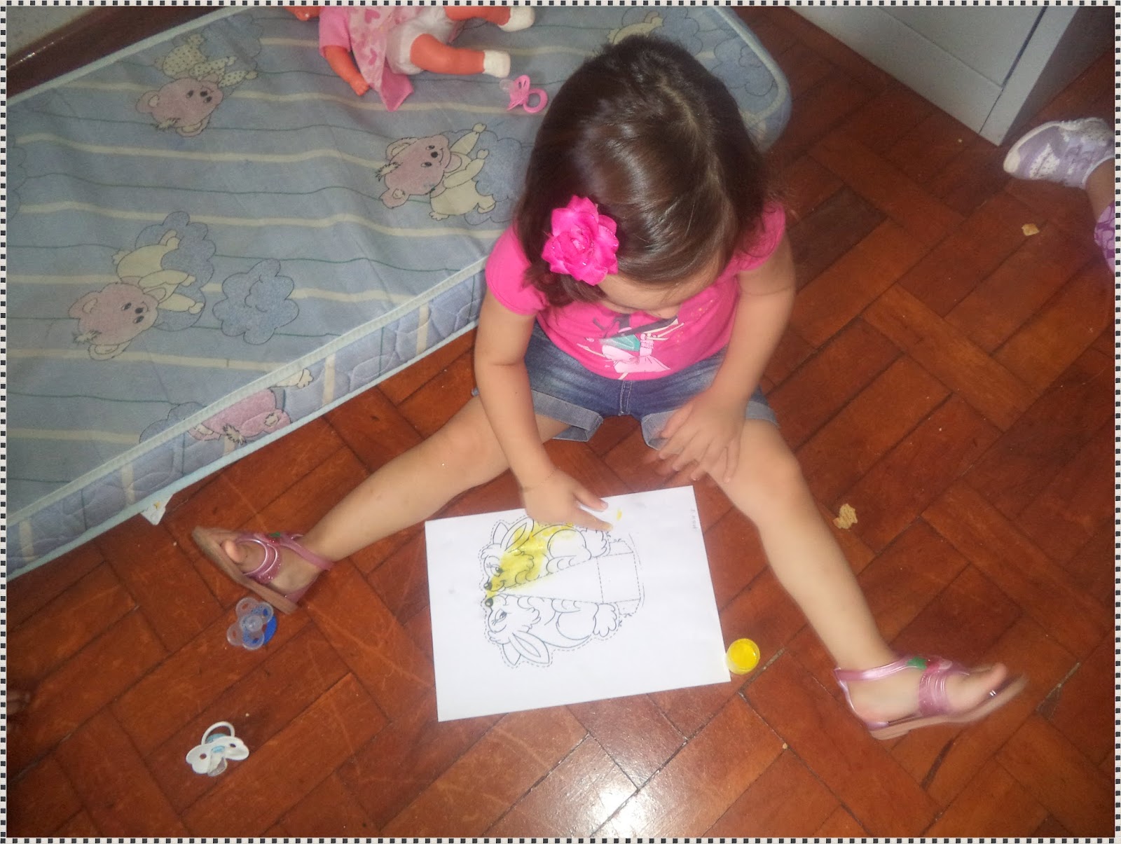 Foi realizada atividade em cds representando a Galinha Pintadinha.